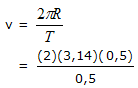 R = jari-jari lingkaran (m)  ,  T = periode (s)